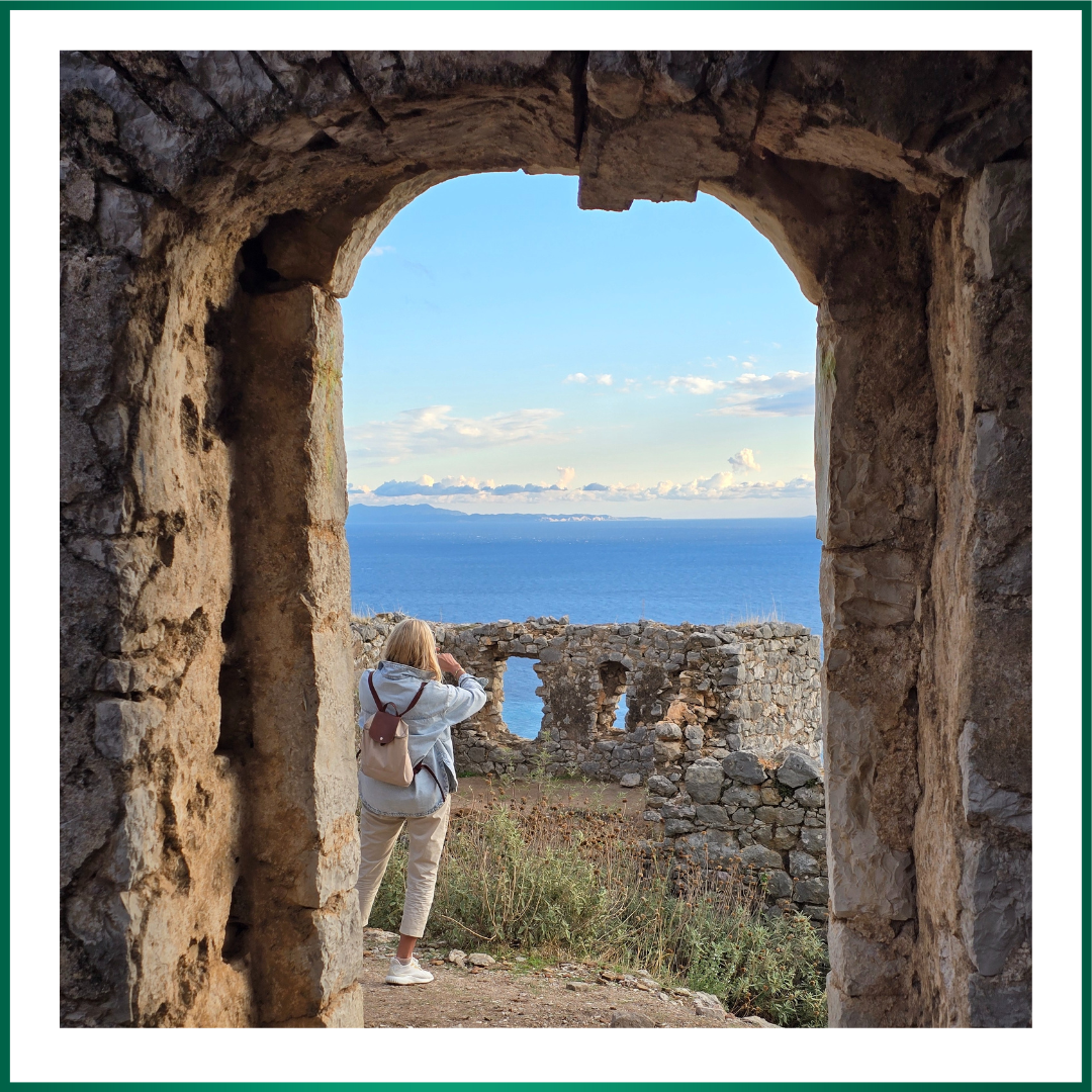 • Llogara – Spektakularna panorama i pyszny posiłek: Przejedziemy przez Park Narodowy Llogara, wspinając się krętymi drogami, skąd rozpościerają się zapierające dech w piersiach panoramiczne widoki na całą Riwierę Albańską i Morze Jońskie. Idealne miejsce na bardzo smaczny i prosty posiłek z widokiem na linię horyzontu gdzie błękit nieba łączy się z turkusem morza. W tle majestatyczne góry i małe greckie wyspy.